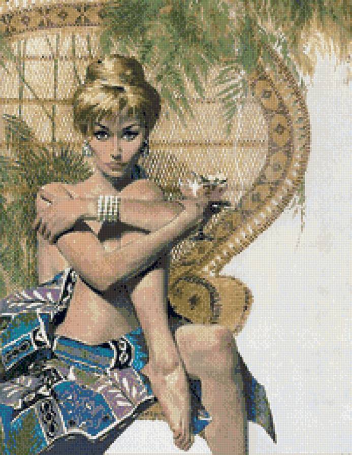 Схема вышивки «Девушка и кот» Девушка и кот