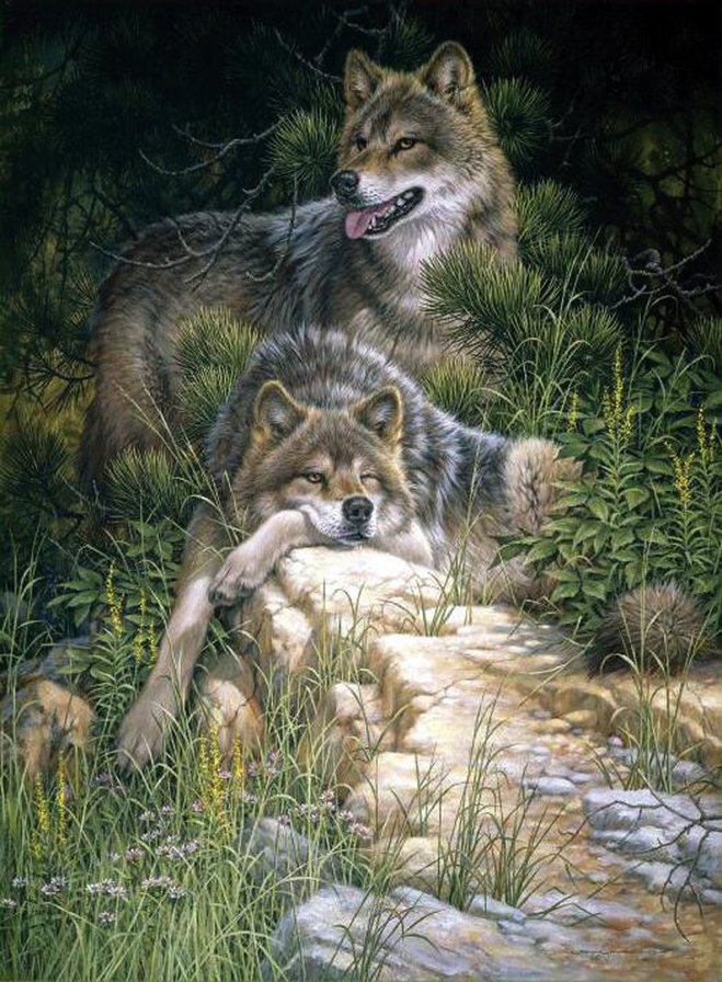 Комментарии к схеме вышивки «Волки на камне.» (№830662)