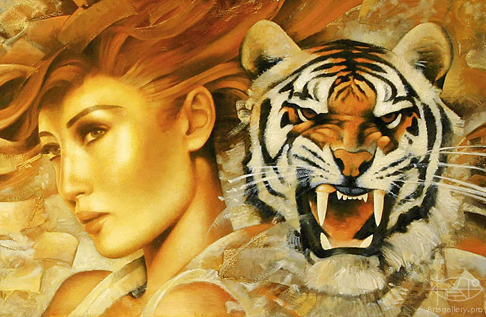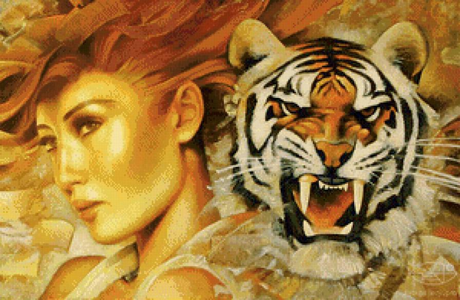 Схемы вышивки, похожие на «женщина и тигр» (№837051) по сюжету