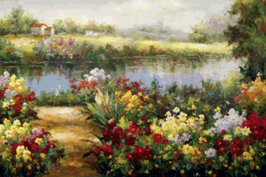 Теги: цветы, пейзаж, жара, поле, живопись, лето, река, дерево.