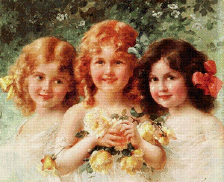 Схемы вышивки, похожие на «три девочки» (№893802) по сюжету