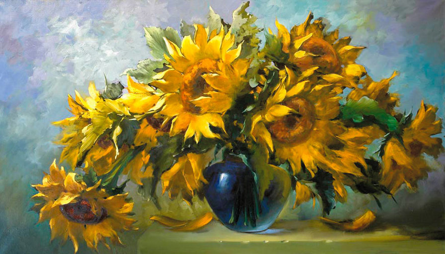 Теги: подсолнухи, натюрморт, цветы.