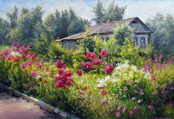 Теги: лето, живопись, природа, пейзаж, деревня, домик.