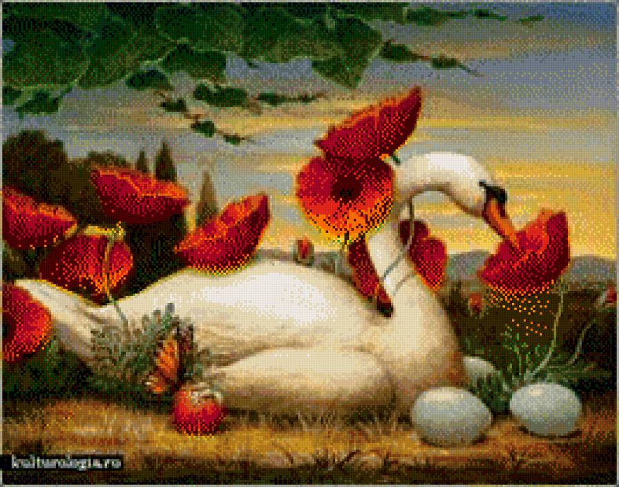 Схемы вышивки, похожие на «гусь в маках» (№928800) по сюжету