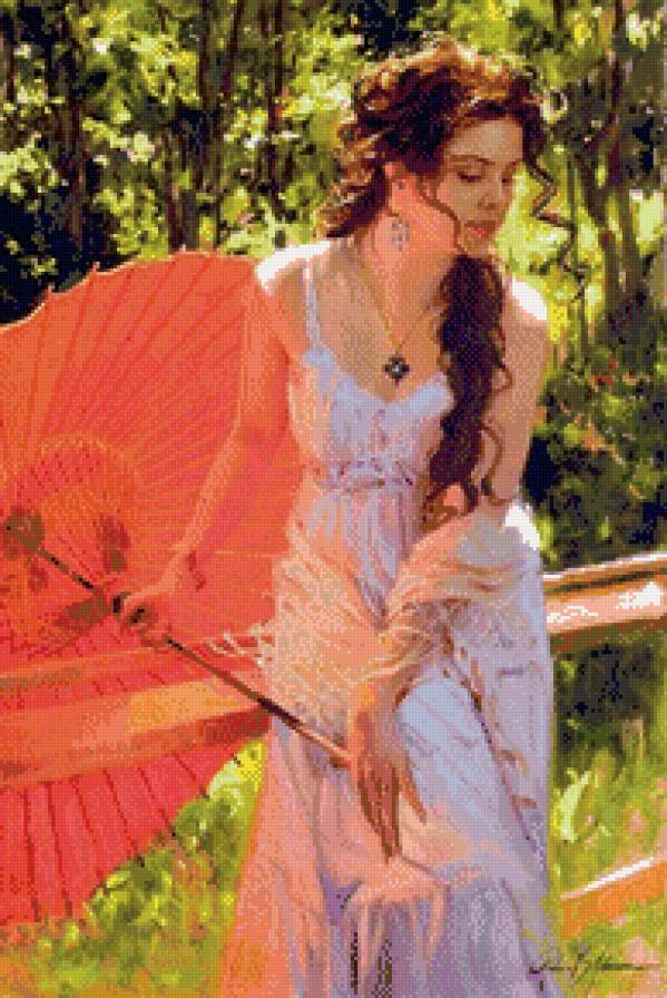 Схемы вышивки, похожие на «Девушка с зонтом» (№953017) по сюжету