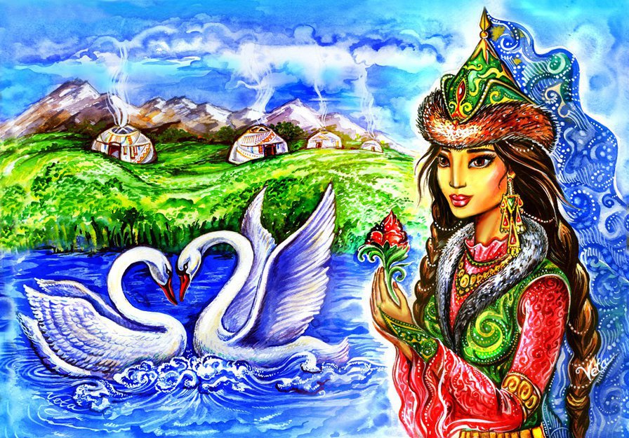 Комментарии к схеме вышивки «Девушка и лебеди» (№983616)