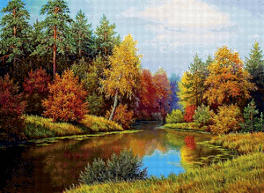 Схема вышивки «осенний пруд» (№986874)