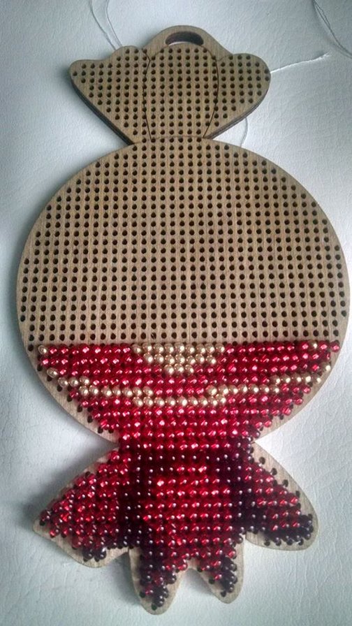 Этап процесса вышивки «Бісером по дереву - іграшка на ялинку )))»