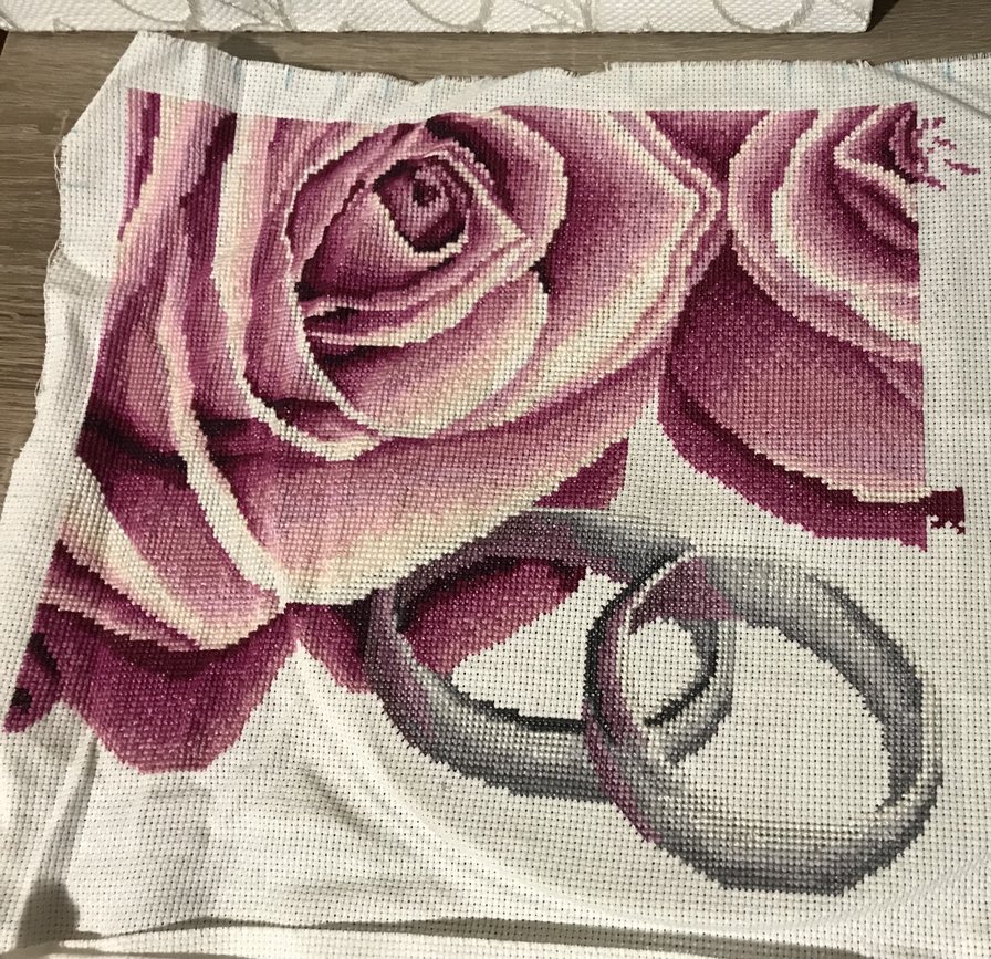 Этап процесса вышивки «Моя свадебная метрика»