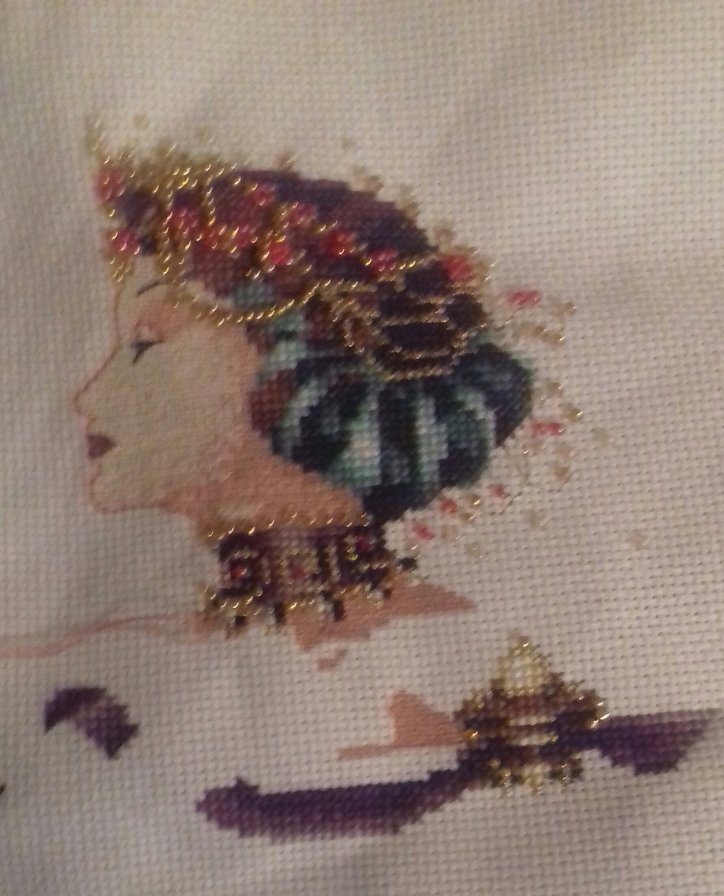 Этап процесса вышивки «Осенняя Королева Мирабилия»