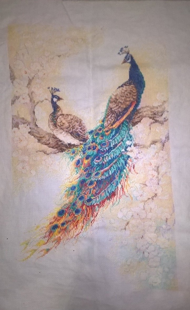 Полностью вышитая картина до стирки и нанесения частичного бисера