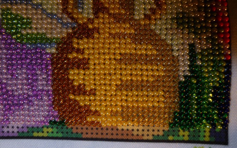Этап процесса «Богородица и голуби (Утро в райском саду), бисер»