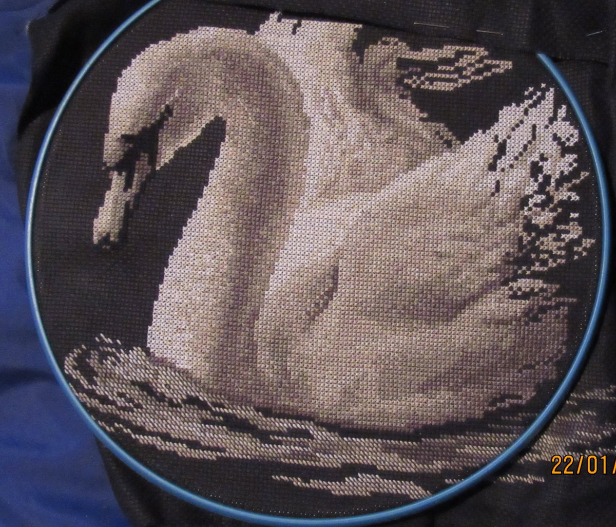 Этап процесса вышивки «Белый лебедь»
