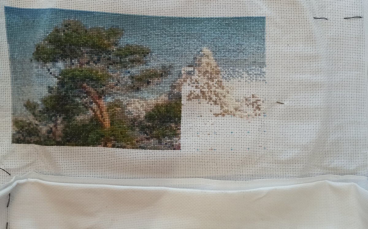 При близком рассмотрении да действительно кажется что крестики разные, особенно в районе неба. Но проверила вышивку, все нормально)